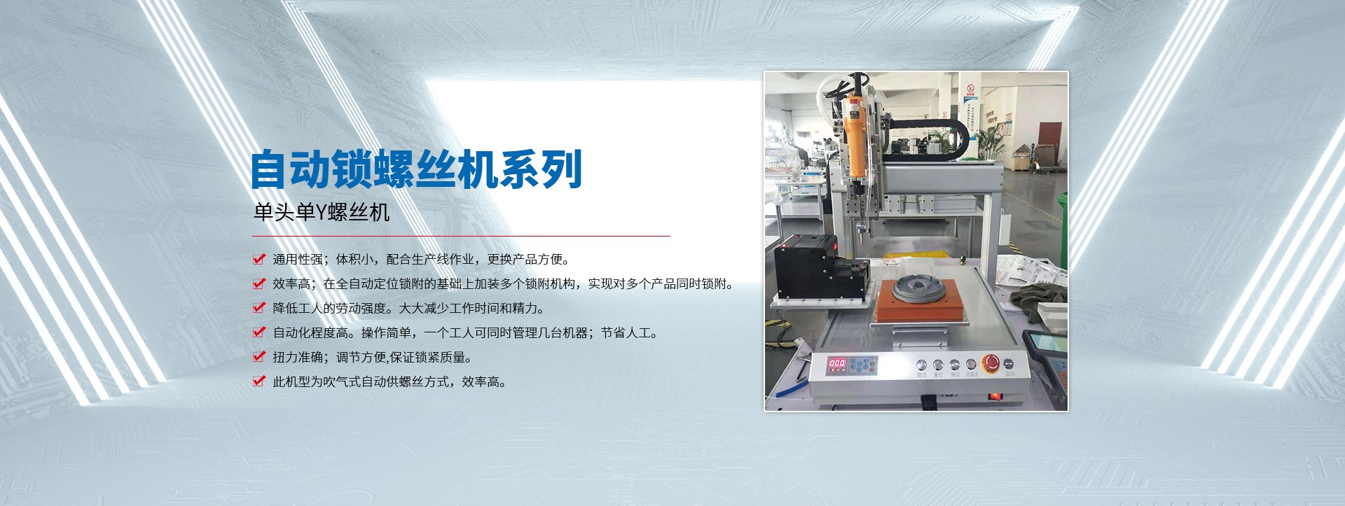 蘇州拓航機(jī)械設(shè)備有限公司成立于2016年,是一家集研發(fā)、制造、銷售及技術(shù)服務(wù)于一體的自動化設(shè)備生產(chǎn)廠家,主營產(chǎn)品有自動螺絲機(jī)、自動焊錫機(jī)、自動點(diǎn)膠機(jī)、自動灌膠機(jī) 脈沖熱壓機(jī),及各類型的非標(biāo)自動化設(shè)備。